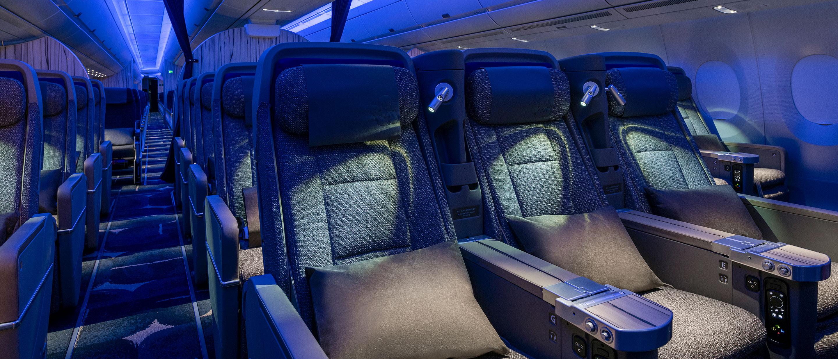 Fusion von orientalischer Ästhetik und modernen Trends. Die stilvolle und komfortable Premium Economy sorgt für ein gehobenes Flugerlebnis.