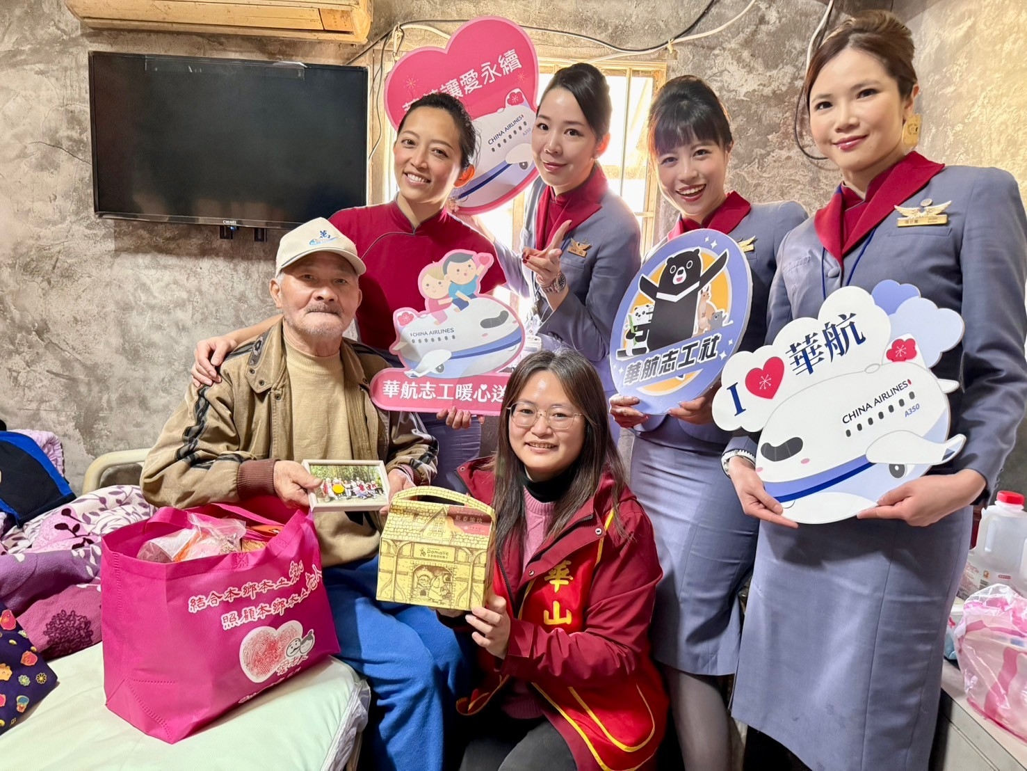 中華航空寒冬送愛,與華山基金會於今(21)日共同舉辦「愛老人 愛團圓」公益活動,至桃園市大園、觀音及新屋地區關懷 160 名獨居長者,並致贈年節關懷禮,讓失能、失依、失智等三失長輩在農曆春節前倍感溫暖。