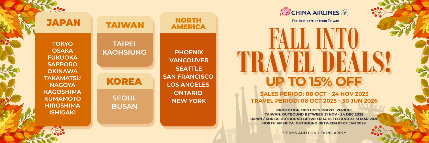 Departure from Singapore to Taiwan, North America and North East Asia.