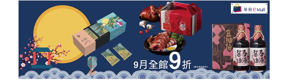 中秋佳節即將來臨,華航eMall即日起至9月30日止全館9折(部分商品除外),並且享有免運優惠;使用中信聯名卡刷滿6,000元,即有機會獲得華航商務艙最新冷壓果汁禮盒。另外,若於12月31日前刷中信聯名卡至eMall及e-Shopping免稅品預訂,可享哩程雙倍送;如鼎尊無限卡消費18元可累積1哩,若消費200元,連同哩程加贈即可獲得22哩,同樣消費金額下,20元累積1哩的璀璨無限卡總共是20哩,30元累積1哩的商務御璽卡可得12哩;eMall單筆每滿100元再加贈5哩程點數(需登錄,每月回饋上限3,000哩)。