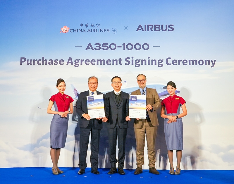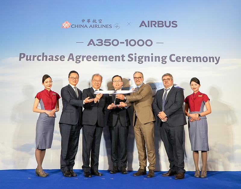 本次簽約儀式由華航董事長高星潢和空中巴士商用飛機行銷部執行副總裁Benoît de Saint-Exupéry於桃園國際機場凱悅酒店共同簽署,華航總經理陳漢銘與會,交通部常務次長林國顯見證。因應全球旅運需求持續成長,華航積極優化機隊結構,此次購機計畫除了10架A350-1000確定訂單,還包含5架選購權,增加整體機隊營運彈性,鞏固長程航線的市場地位,特別是紐約、倫敦等高需求航點。