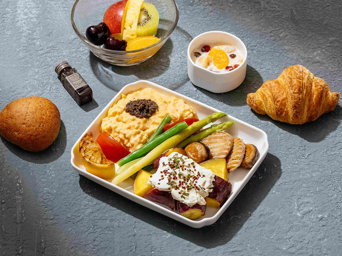 For this special partnership, Little Tree Food has tailored a selection of Western-style breakfast dishes for all three cabin classes on long-haul flights to the U.S., Canada, Europe, and Australia departing from Taoyuan. Travelers in Premium Business Class can savor the main of Truffle Scrambled Eggs and Salt-baked Sweet Potato with Cream Cheese Sauce, paired with truffle scrambled eggs. Premium Economy Class passengers will enjoy a Continental Breakfast with French Toast featuring fluffy toast with creamy scrambled eggs and grilled broccoli for a satisfying start to the morning. In Economy Class, travelers can opt for the Mushroom Fajita Omelette, a mouthwatering omelette combined with a fajita of red and yellow capsicum, green pepper, and onion creating layers of flavor even 10,000 feet up in the sky.