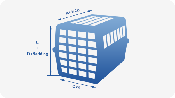 • The container must be able to allow the pet(s) to stand, lie down and turn in a natural manner. The pet(s) must be able to stand up without touching the roof.