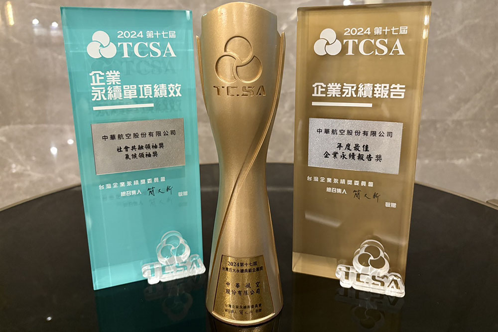Gepubliceerd: dec 11, 2024China Airlines, a Taiwan based carrier, continues to deliver results, with outstanding performances in sustainability; the carrier has won the top five awards at the 2024 Taiwan Corporate Sustainability Awards (TCSA) and Global Corporate Sustainability Awards (GCSA). This brings the winning streak to 11 consecutive years. In particular, winning the Service Industry Best Report Award in sustainability reporting for the third consecutive year demonstrates China Airlines’ unwavering commitment and proactive approach to sustainability.