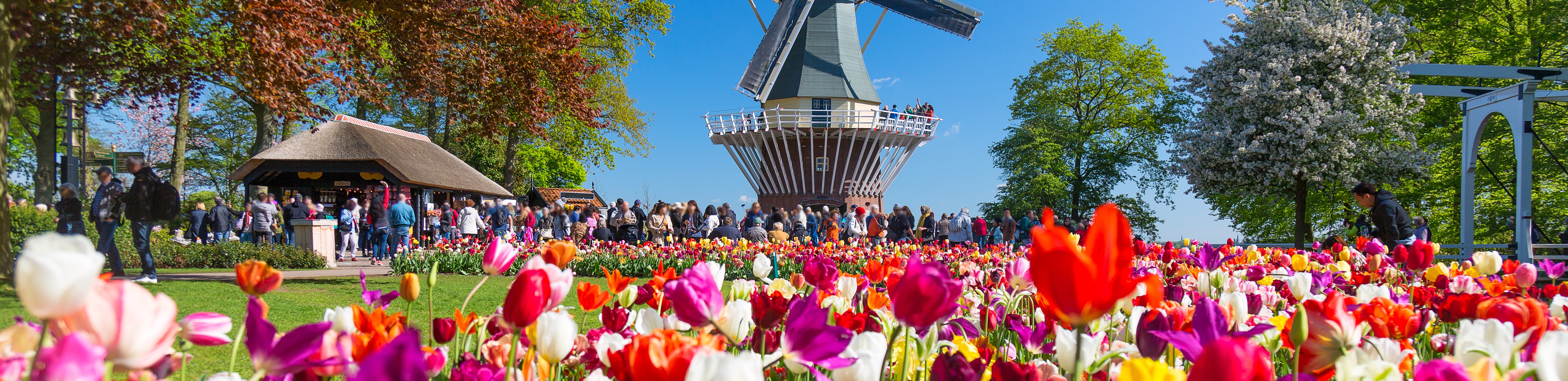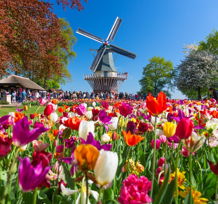 Taman Bunga Keukenhof di Negeri Kincir Angin selalu memiliki daya magnet tersendiri akan keindahannya. Bulan Maret hingga bulan Mei menjadi waktu yang tepat untuk berkunjung ke sini. Terdapat 7 juta kuntum bunga tulip yang ditanam seahun sekali.