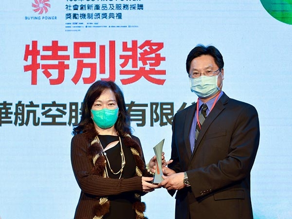 經濟部中小企業處財團法人台灣經濟研究院為推動社會創新發展與開拓社會行銷通路,主辦「Buying Power社會創新產品及服務採購獎」,鼓勵政府機關、公司企業及組織團體等,率先採購社企產品或服務,實踐企業社會責任。華航秉持落實環保與人文自然環境永續發展之精神,與仁舟社會企業合作開發「華航矽緻摺疊隨行杯」,獲得【環境永續組-特別獎】及【採購首獎】佳績。