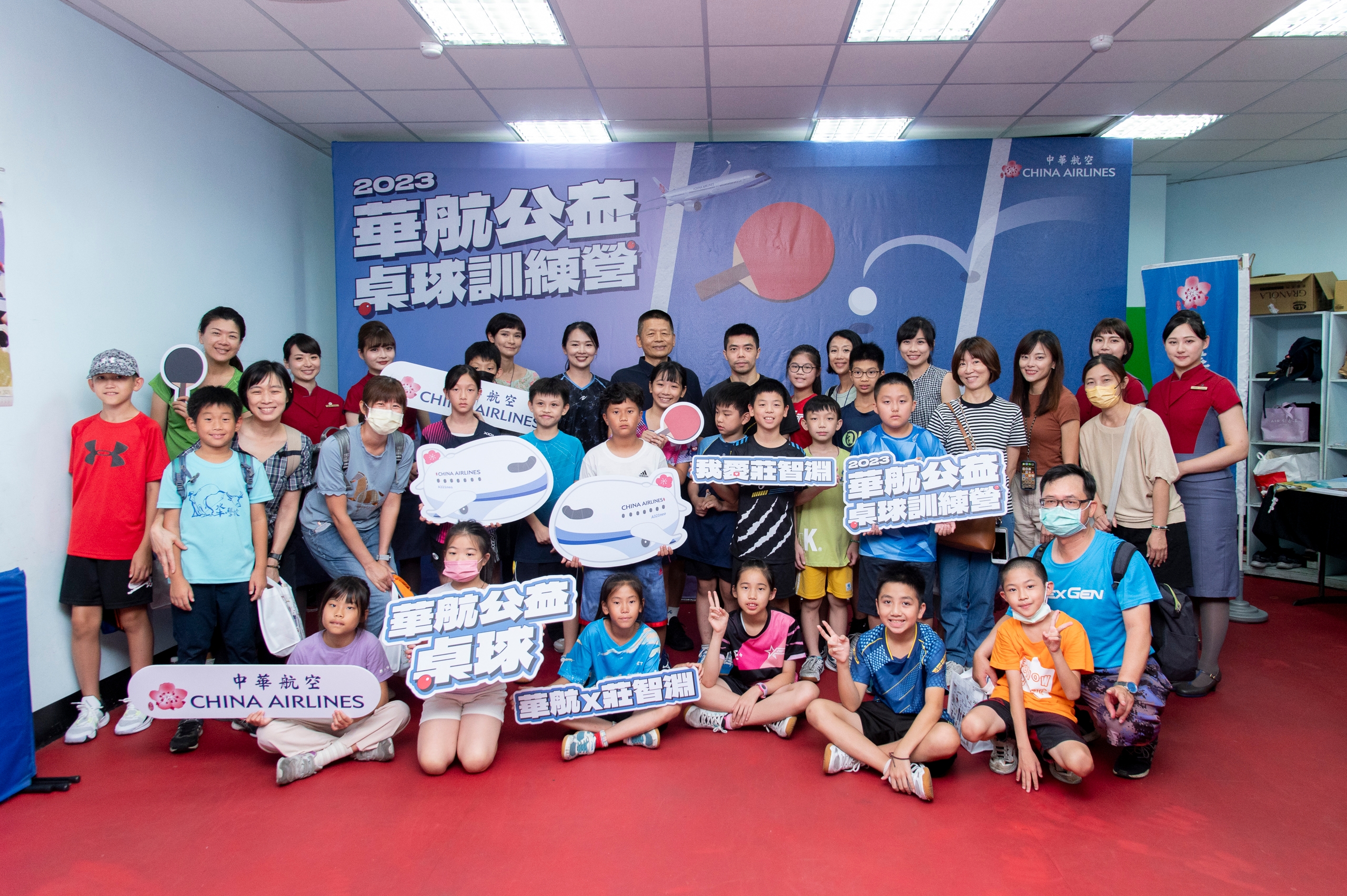 華航首度舉辦公益桌球營,資深副總經理賴銘輝親臨開訓,與學童們一同體驗揮拍活力,並鼓勵對桌球充滿熱情的小朋友,把握難得的學習機會,享受運動的樂趣,也期盼為台灣桌壇孕育更多新血。莊智淵表示,首次參加華航公益活動收穫滿滿,很開心能透過自身的經驗與小朋友們互相交流,並鼓勵他們勇敢追夢、積極行動。