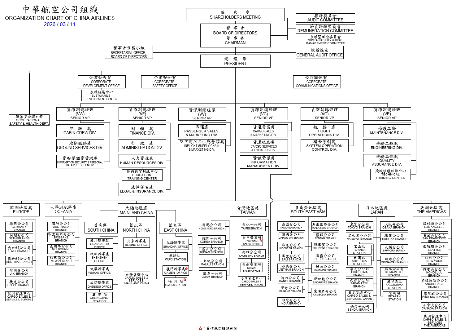 *:純貨運業務航點、@:與其他業者合營航點、☆:華信航空班號飛航