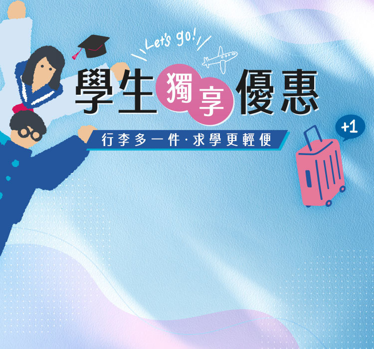 行李多一件 求學/打工更輕便 華航推出獨家學生/打工度假優惠,不論是出國讀書或回家團聚,都不必再為行李煩惱!