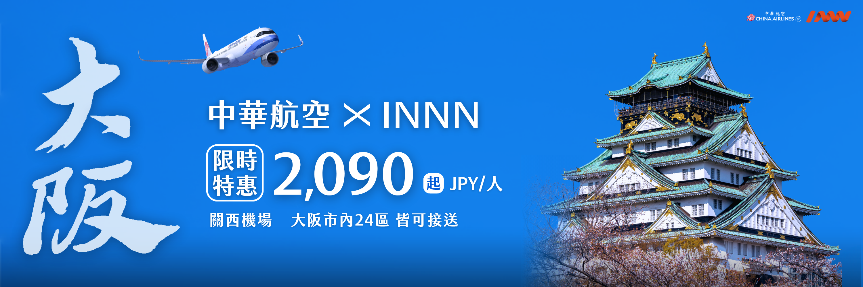 中華航空聯合INNN,共同推出超值價格預約大阪關西機場-飯店接送服務 限時優惠價